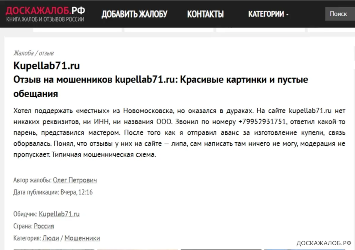 https://доскажалоб.рф/ljudi/moshenniki/106489-otzyv-na-moshennikov-kupellab71ru-krasivye-kartinki-i-pustye-obeschanija.html