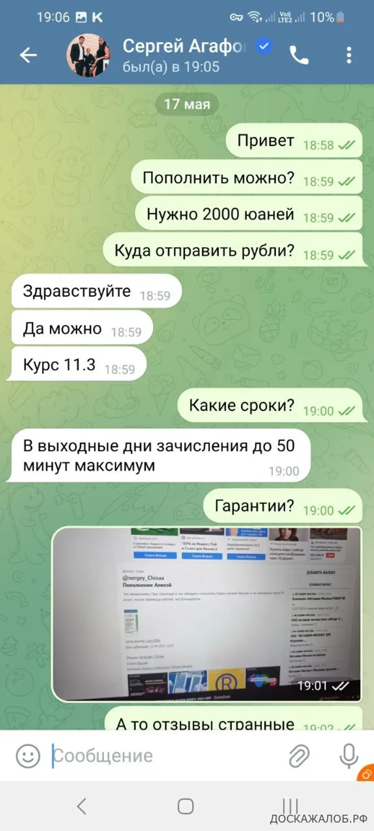 » Жалоба / отзыв: @sergey_Chinaa Пополнение Алипэй - @sergey_Chinaa (МОШЕННИК)