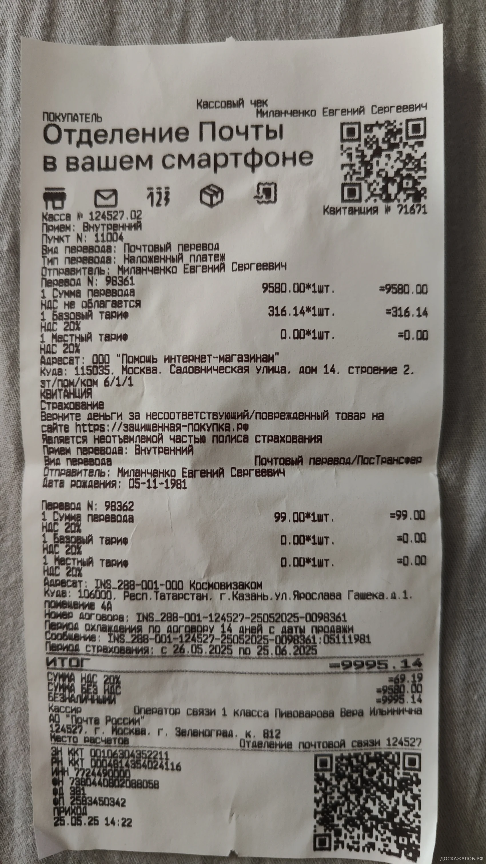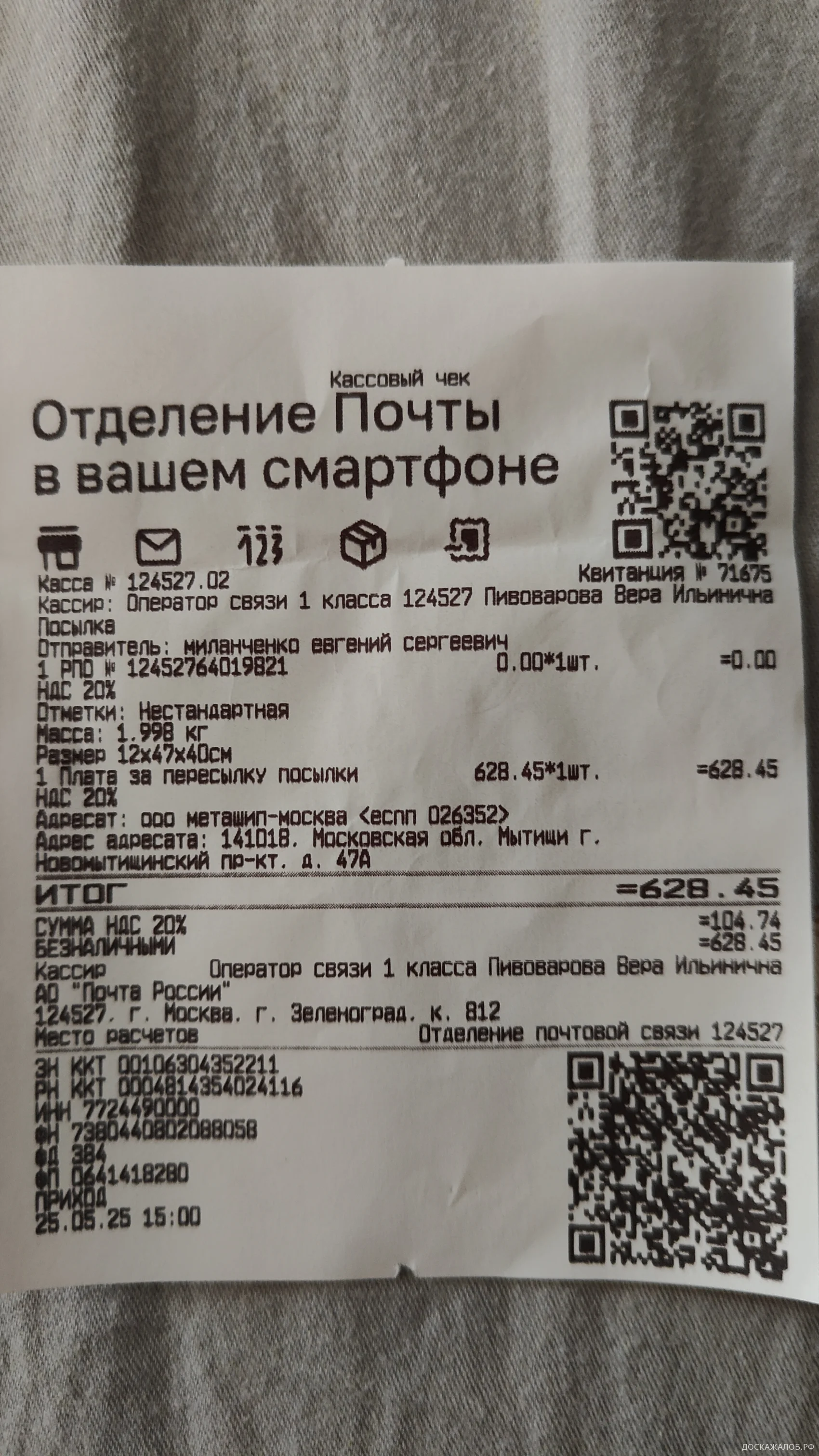 Требую вернуть деньги в полном объёме, чек прилагается.