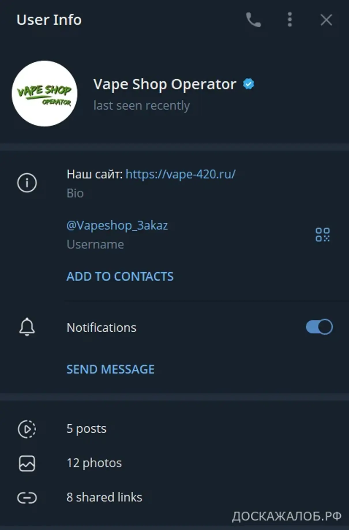 После покупки происходит полный игнор, далее бан. У них есть куча накрученных отзывов на сомнительном сайте https://rep-vseti.ru/site/vape-420.ru. Ноль негатива, лишь куча довольных ботов. Здесь, на доске жалоб, эти аферисты регистрируют, покупают или достают иным способом аккаунты, чтобы попытаться отбелить себе репутацию хорошими отзывами и комментариями.