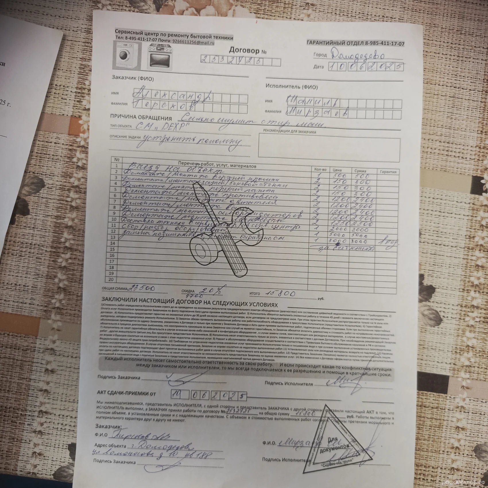 Добрый день. 10.06.2025г. по договору - 2532725 мастером Мирзаевым Шамилем Султановичем осуществлялся ремонт стиральной машинки г. Домодедово. В настоящий момент проблема повторилась и требуется ремонт по гарантии. В ближайшее время прошу решить данную проблему. Связаться с сервисом и мастером никак не могу.