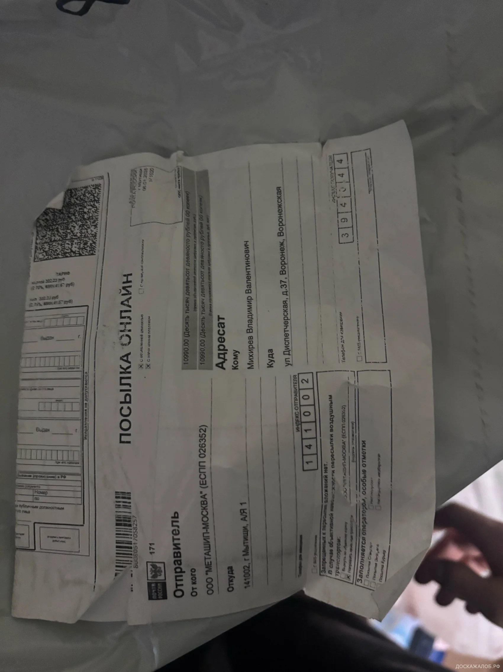 Отправитель посылки: ООО «МЕТАШИП-МОСКВА».