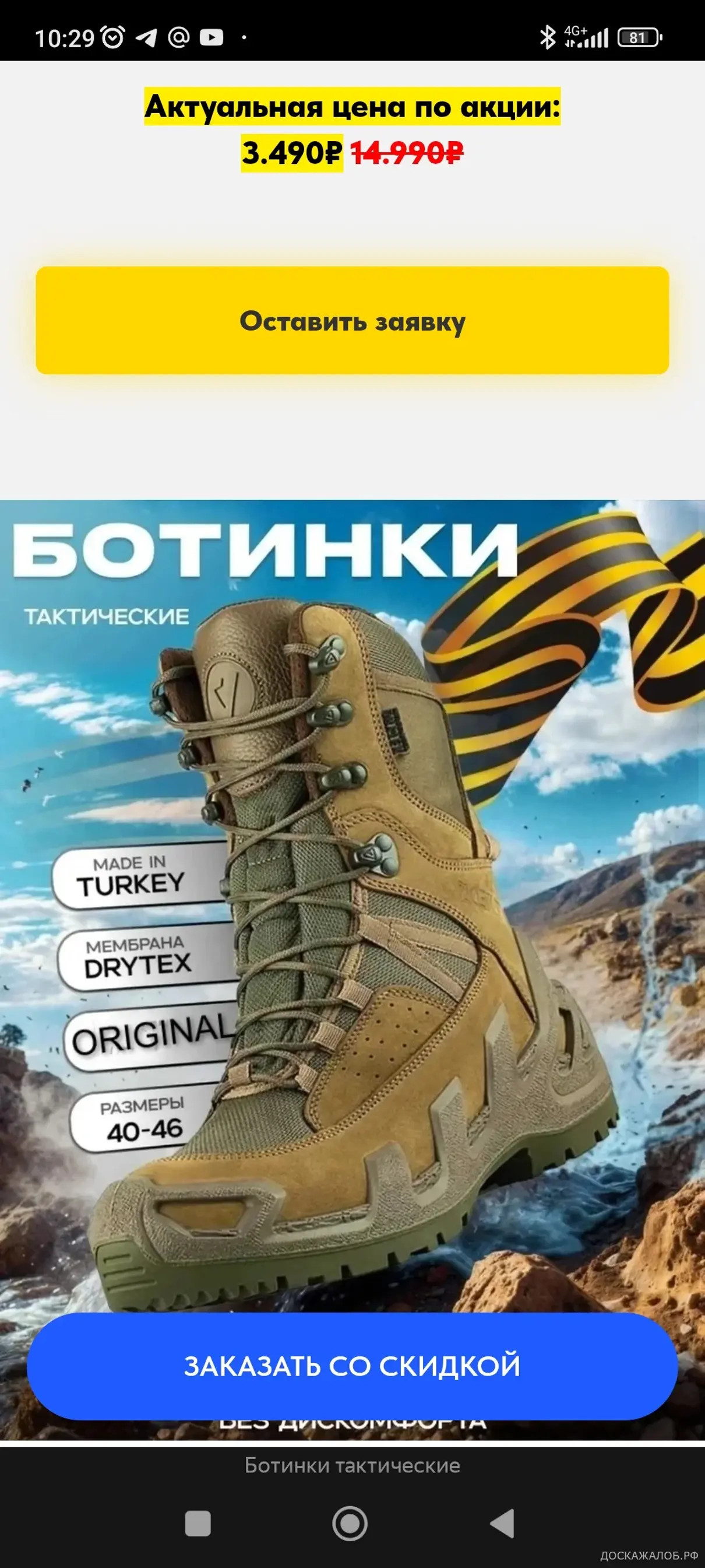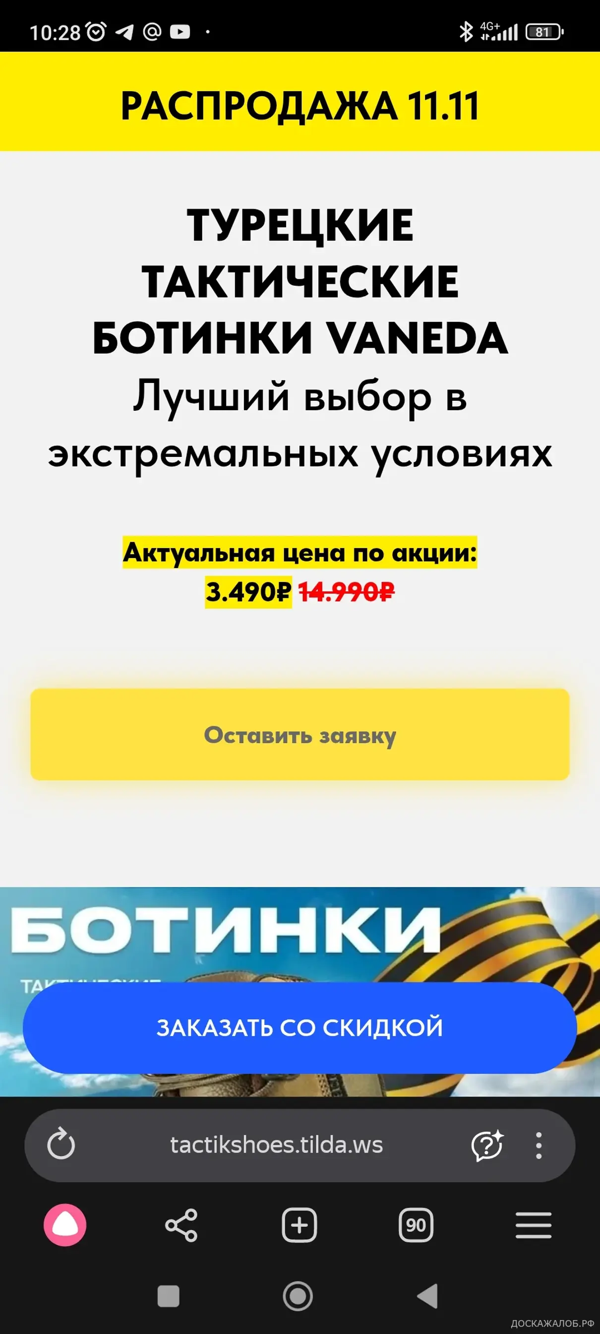 На сайте tactikshoes.tilda.ws оставил заявку на заказ ботинок Vaneda. прислали ботинки другого производителя, другая модель, плохого качества, другого цвета.