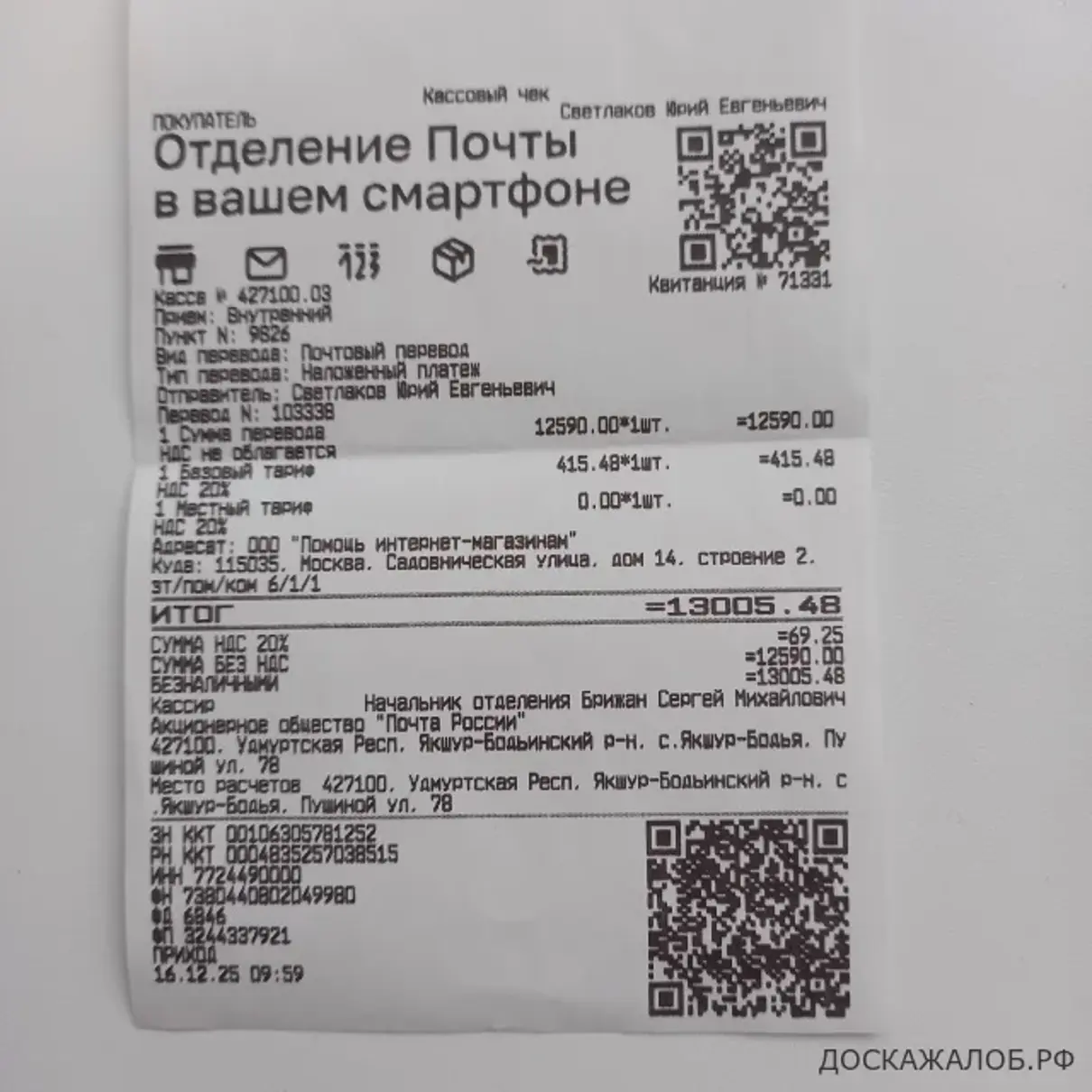 Выписывал костюм рыболовный "Поплавок". Прислали совершенно не тот товар, который заказывал, и не того размера. Нет никаких реквизитов, чтобы оформить возврат товара. Прошу вернуть деньги.