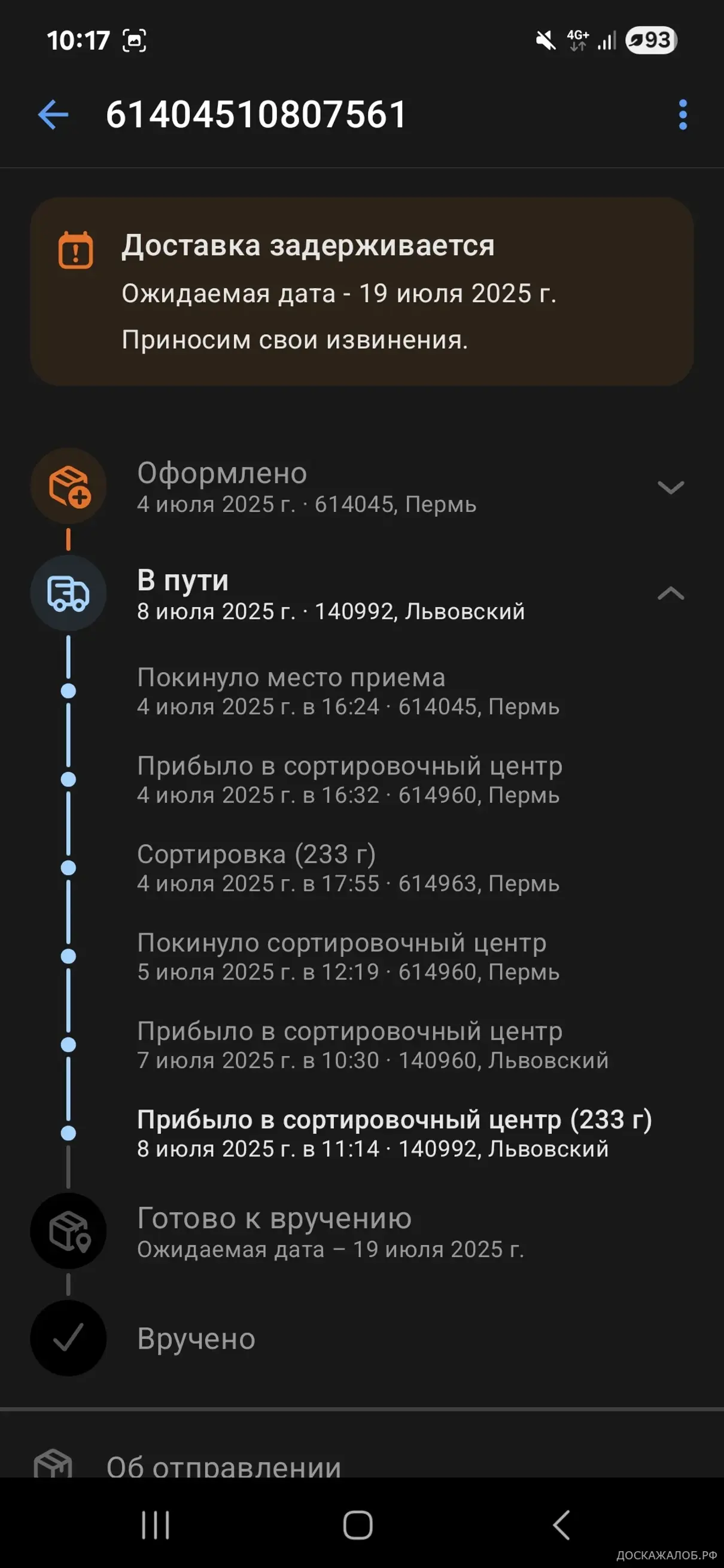 Застряла бандероль с важными документами, должна была прийти 13 числа, теперь её переносят, в поддержке не отвечают, ускорила, через приложение, статус, должен был поменятся, ничего не меняется, до Отделения куда должна была придти бандероль из Львовского, сутки, а мне перенесли на дату 19,боюсь, что теперь её потеряют и я останусь без документов сделайте, что нибудь, я буду, везде, жалобы писать, чтобы моё отправление сдвинулось с места, с Перми, отсортировали за сутки, а во Львовском, что, чем занимаются?
