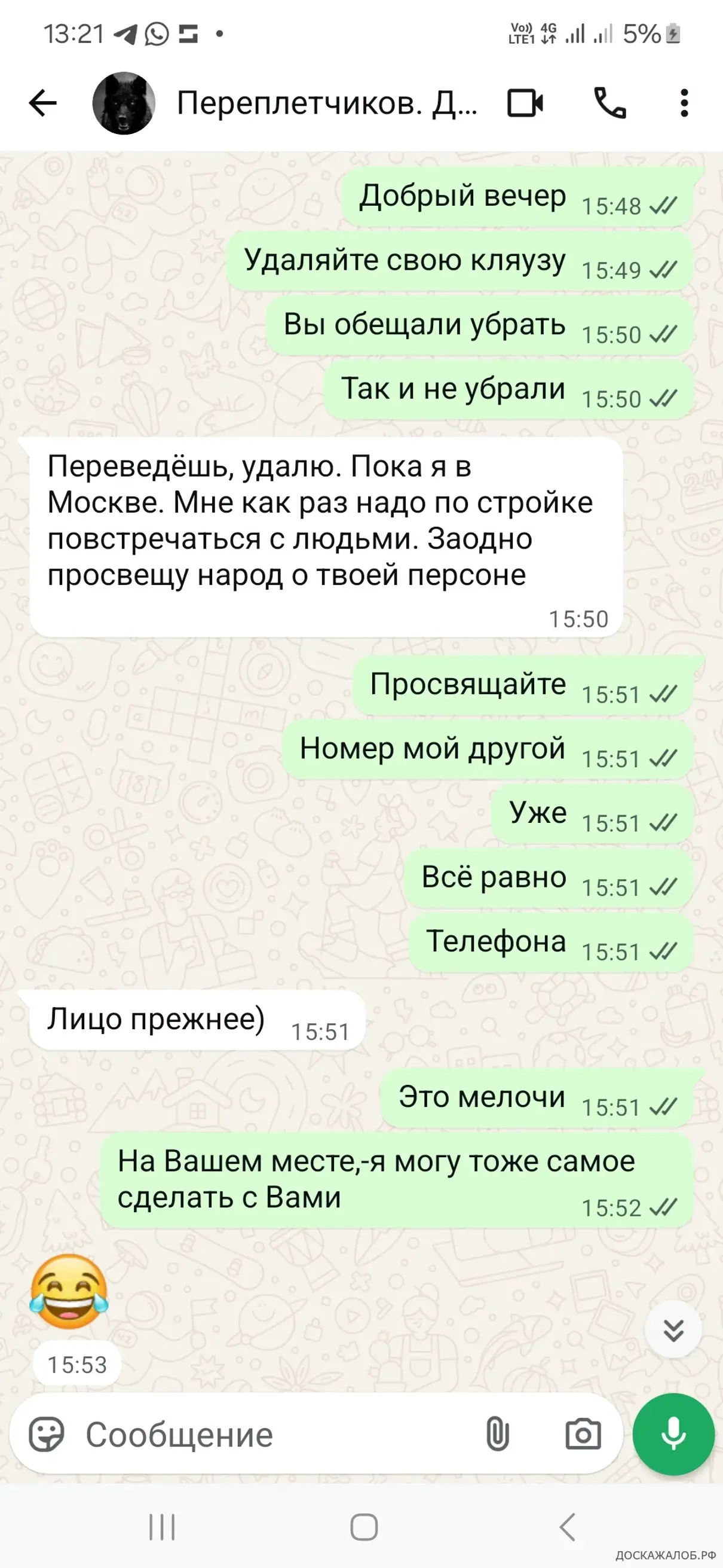Переплётчиков Дмитрий занимается подбором рабочих, озвучивает по телефону информацию, которая не соответствует действительности. Ни к строительной организации, ни к строительной площадке отношения никакого не имеет.