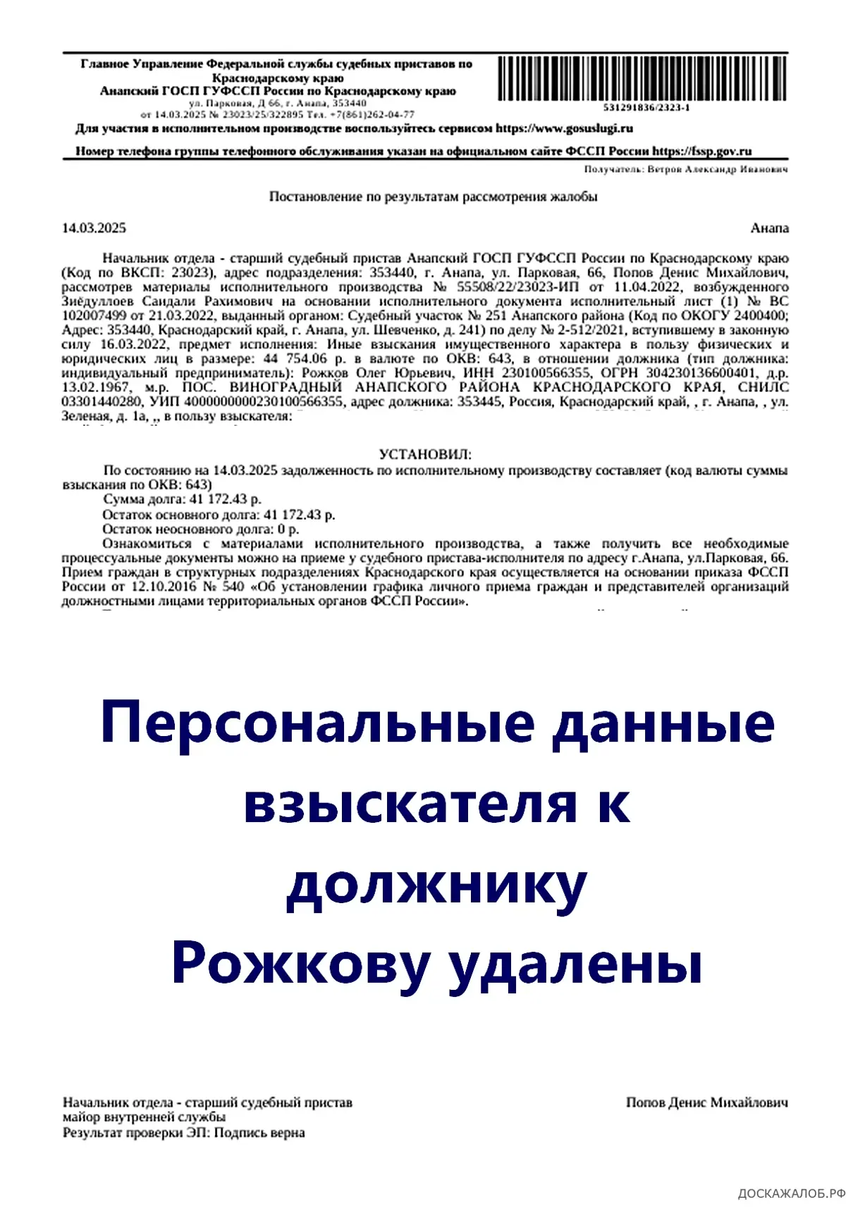 ИП Рожков Олег Юрьевич, более 3-х лет является должником в рамках исполнительного производства № 55508/22/23023-ИП, по которому так и не выплатил сумму размером более 40 тыс. руб. Известны также и другие исполнительные производства, бывшие в отношении него.